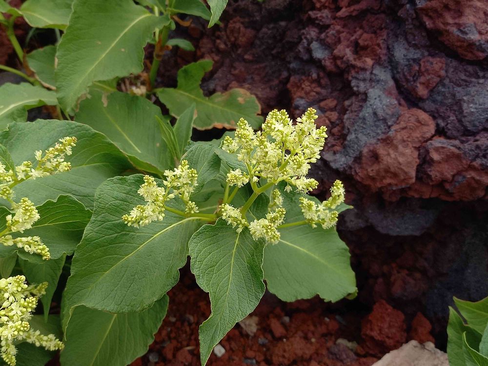 イタドリの仲間の高山植物で、他の植物の生えない不毛な砂礫地に群落をつくります。