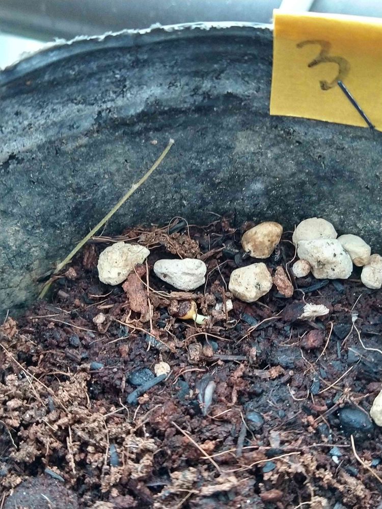 10粒まいたけど、ほぼカビて謎のきのこまではえた中、ついに発芽を確認!
