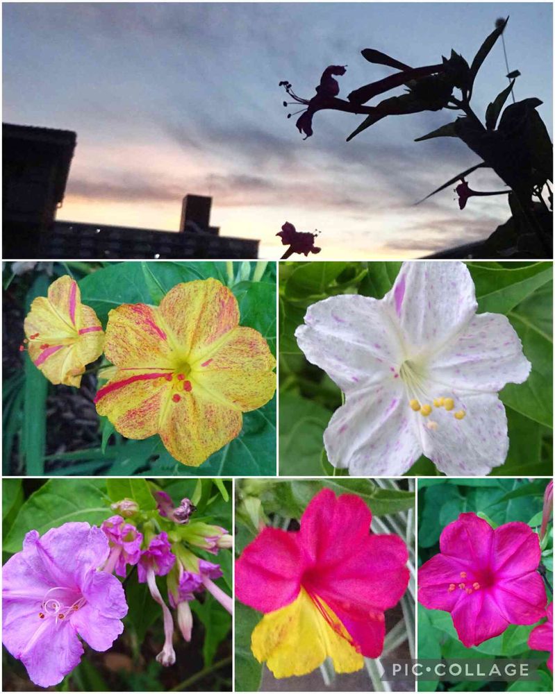 今年のオシロイバナ、夕焼けと共にいいわー💕