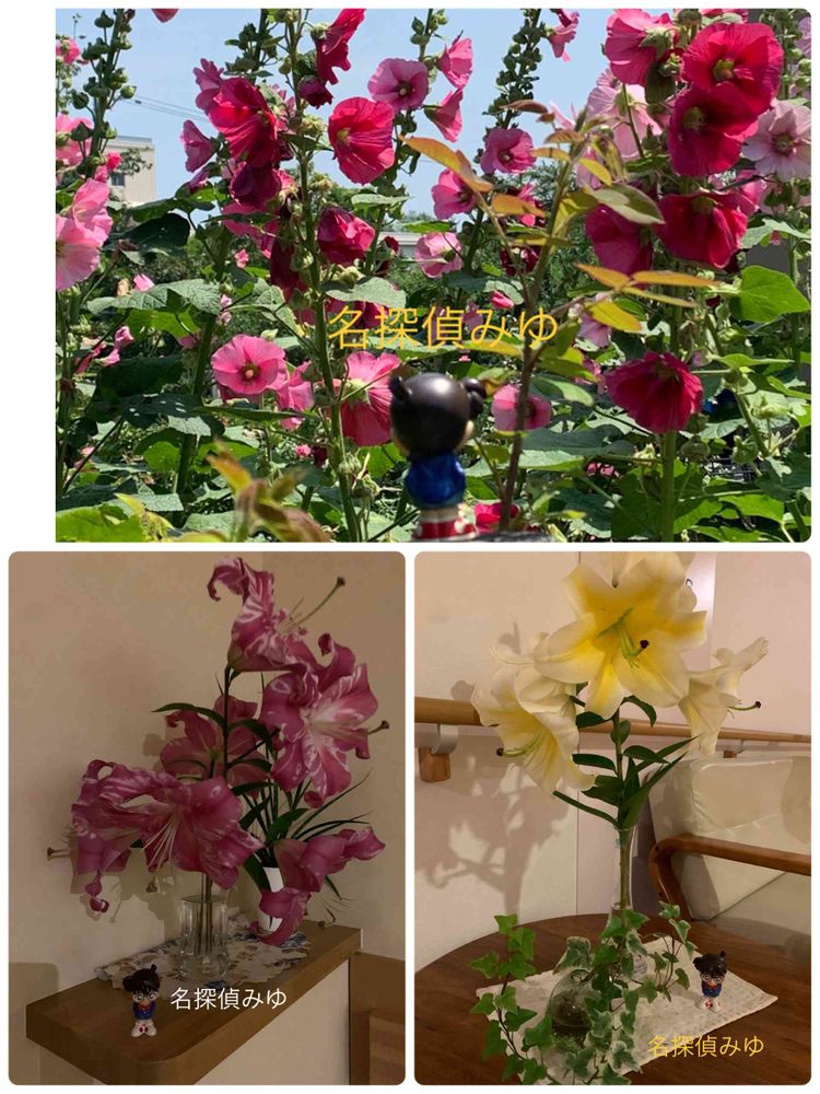 タチアオイに見惚れているコナンの後ろ姿でした〜♡