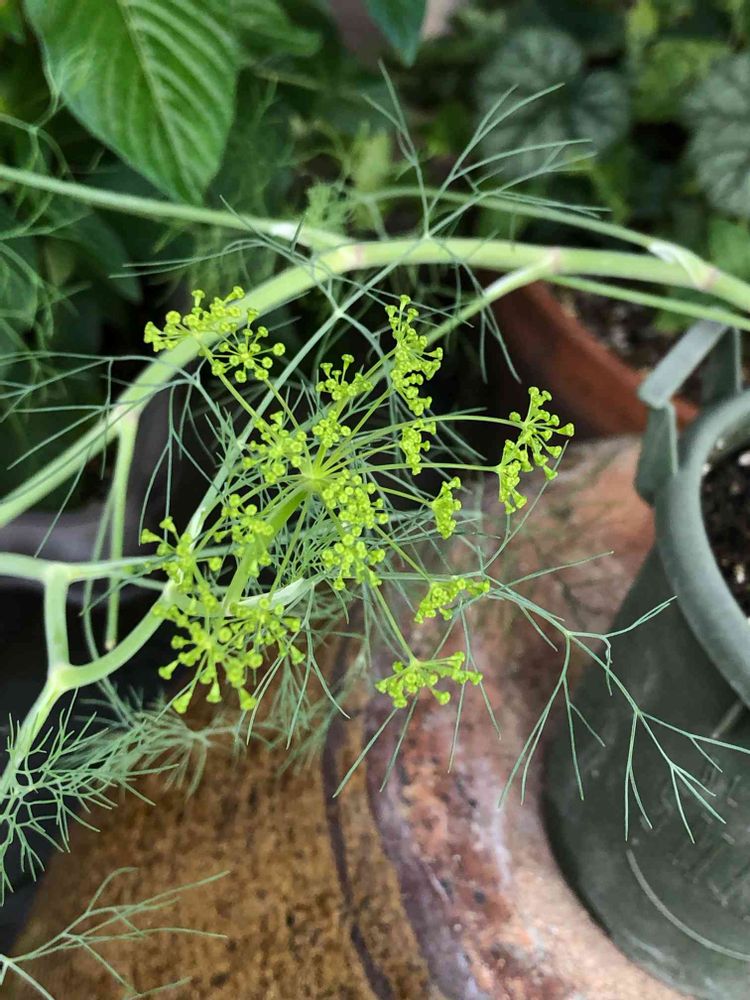 ひょろひょろのディル🌱🌱ツボミ 庭の植木鉢🪴