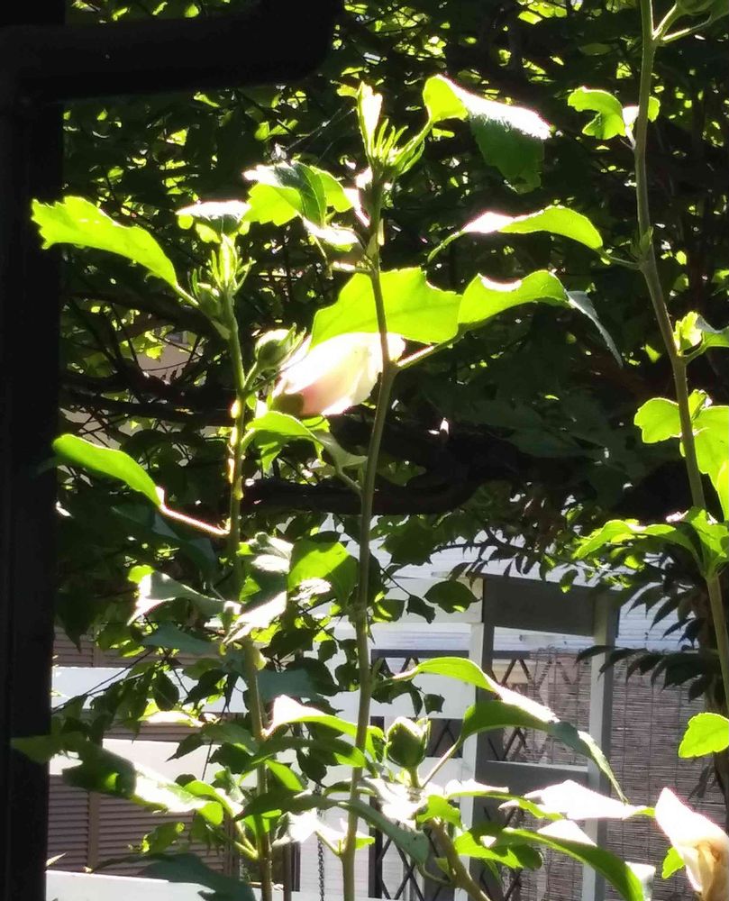 ムクゲの葉っぱ🌱から、梢の方の葉っぱから 細い糸みたいに…💧⇣⇣⇣⇣⇣ す~す~って落ちてるの見たのです!!