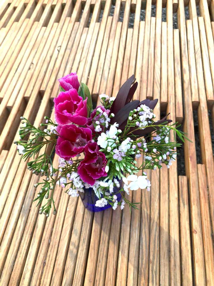 花材: クラキア、ワックスフラワー(八重咲き)、フロックス、レウカデンドロン