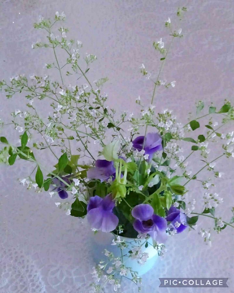 庭のお花が徒長したので 花瓶に飾ってみました💜💮☘️