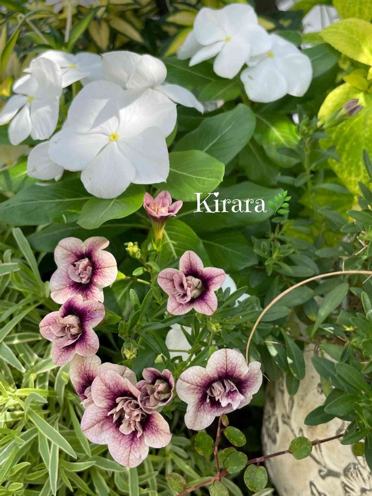冬越しミリオンベル プチホイップ ラムレーズンとサカタのタネの白いサンパチェンスは木陰で 涼やかに咲いてます(✿´꒳`)ノ°+.*