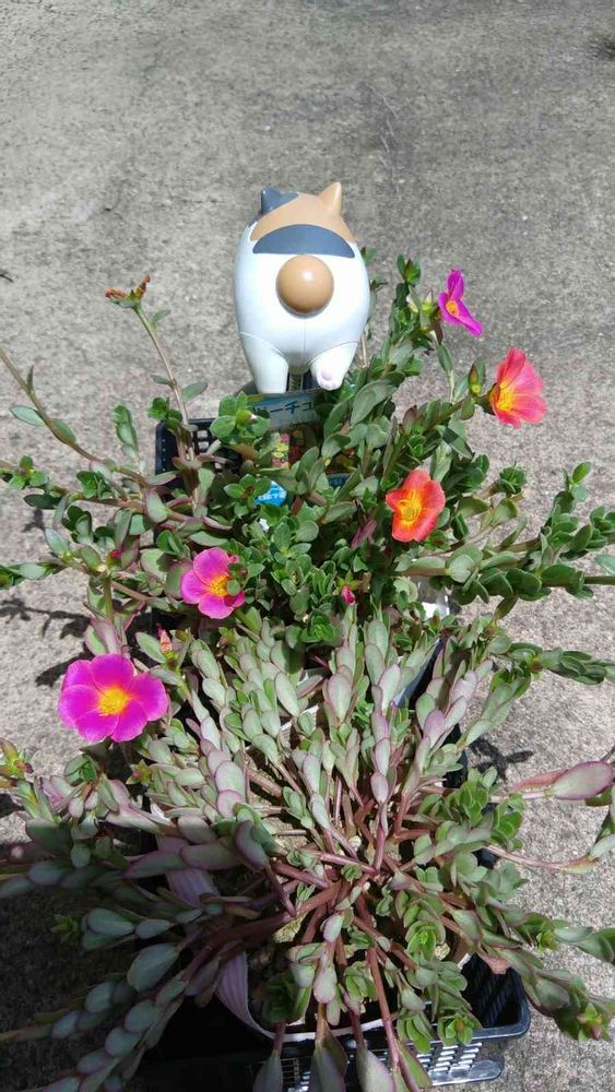 手前はピンクのポーチュラカさんで、奥はミックス咲きのポーチュラカさんです😆