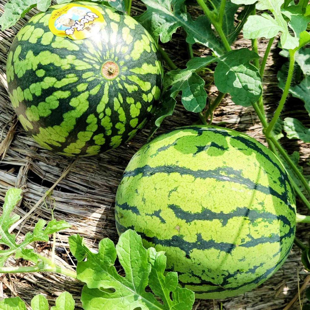 買ってきた小玉すいかと並べたら、うちの“すいちゃん”の方が大きいですよ😆💕