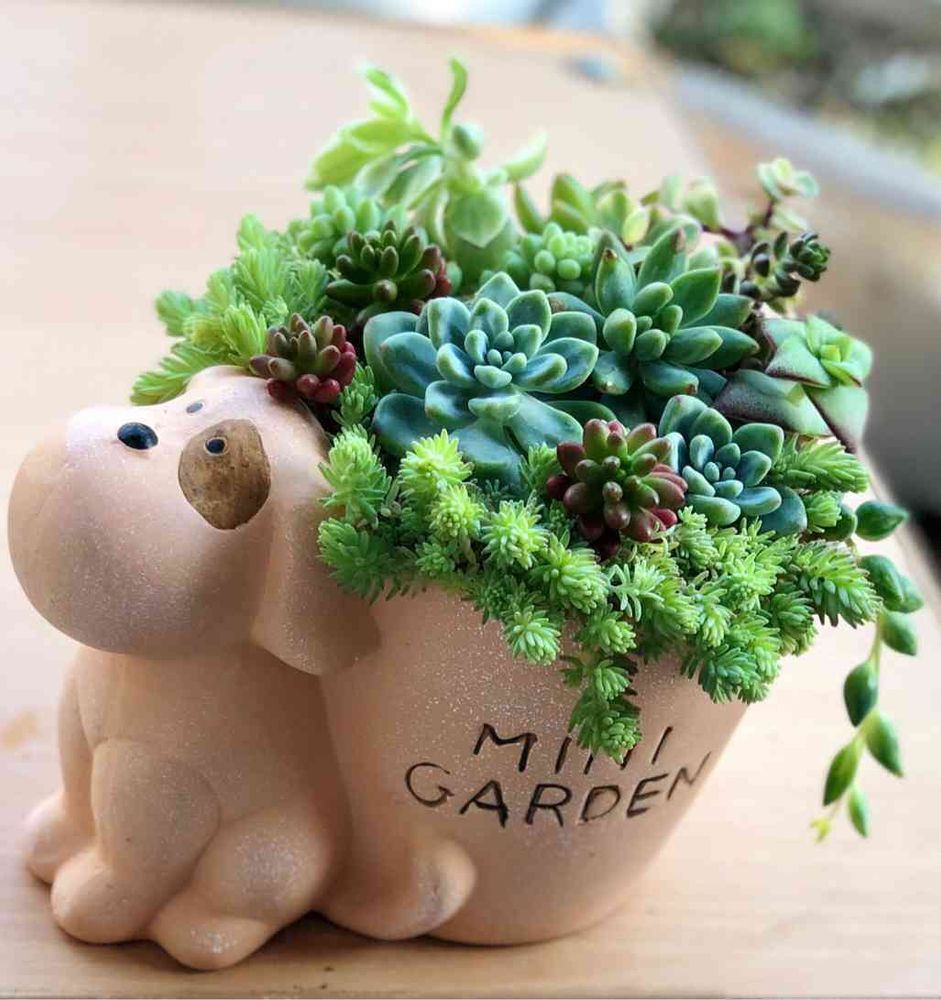 可愛いワンコ鉢に可愛い多肉ちゃん😍