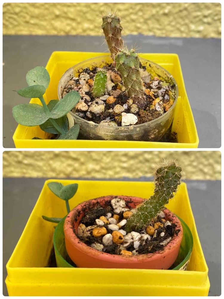 柱サボテンは少し日焼けしたようですけど頭の方いい緑色が出てきて安心です。