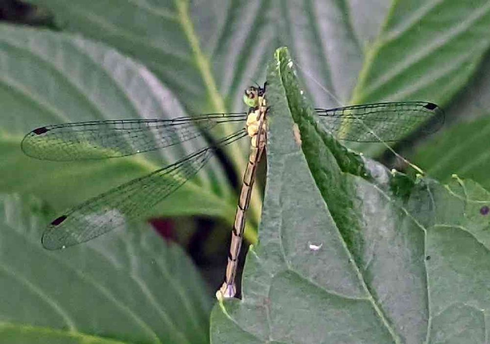 紫陽花の葉にアオイトトンボ