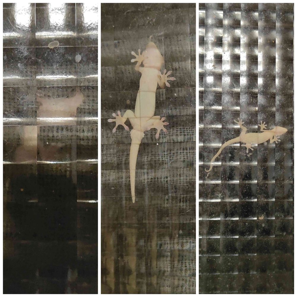 外に出て見てみたい 忍者の如く家を守って今日は三匹出動 猫の肉球とはまた変わった形網戸の上は歩きにくいらしい まさか裏から見られているとは思っていない 少し草取りして住処が減ったからかね〜
