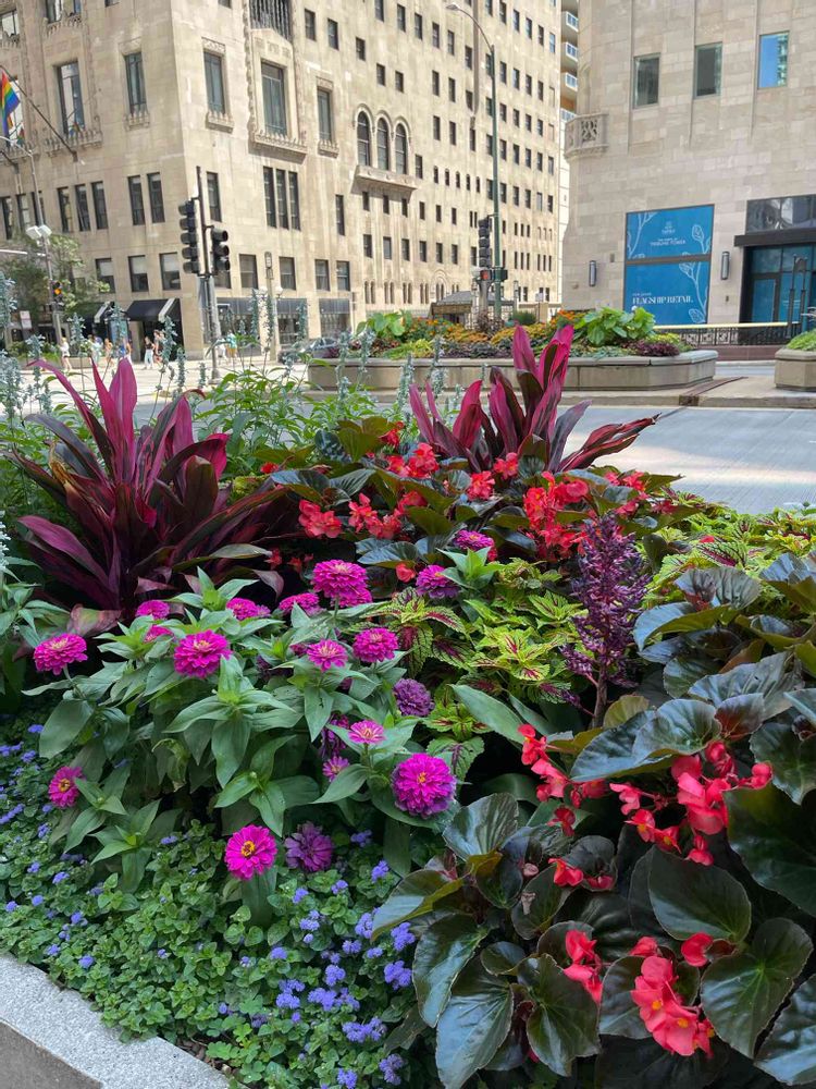 日陰にもなる位置(高層ビル街だから)なので日陰に持ち良い植物が植えられている