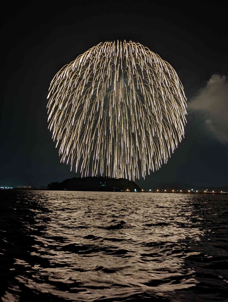 この花火、海面までタラ〜と垂れてたけど、その前にシャッター押しちゃいました。