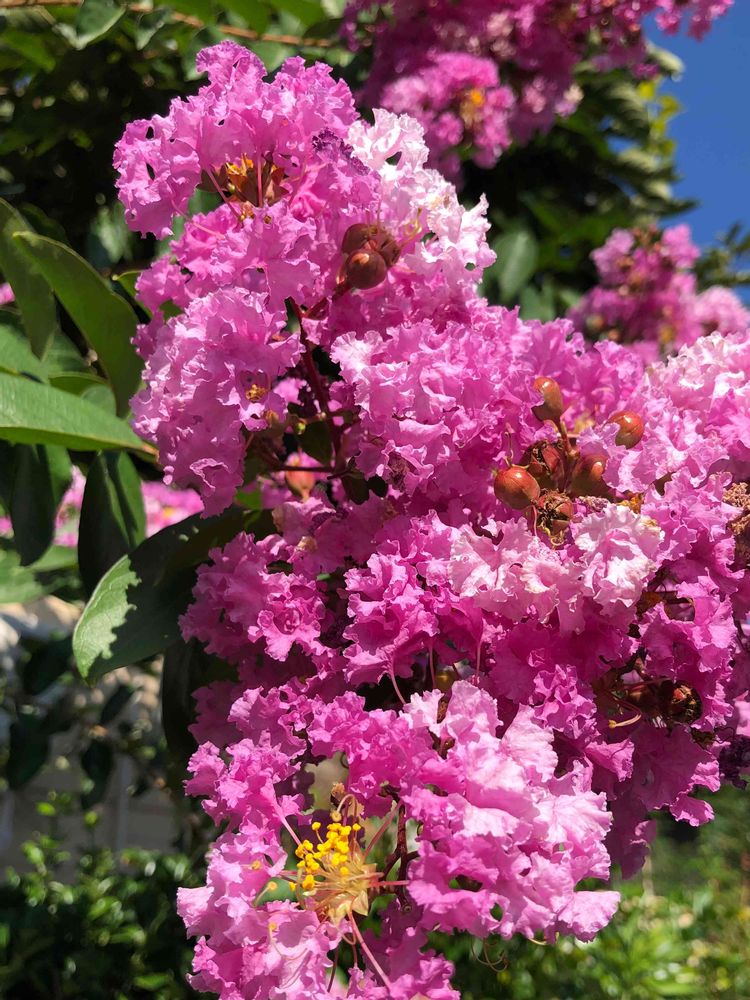 うちの近所の街路樹はサルスベリです。しかもピンク。