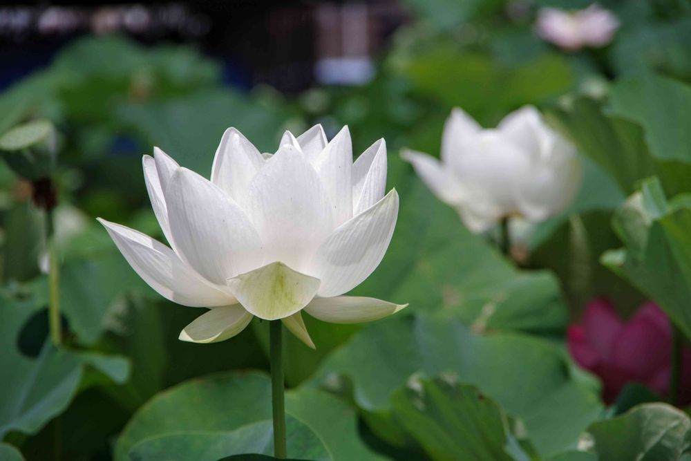 真っ白い蓮の花の前に佇むと、心が洗われ無に近い感覚に陥ります