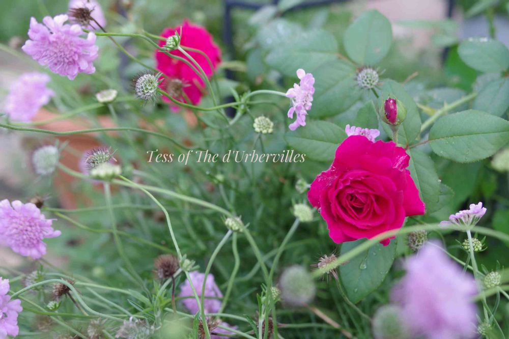 今年植え付けたテスオブザダーバービルズが初めて咲きました♪実物はもっと赤いです。写真色飛びしてます。