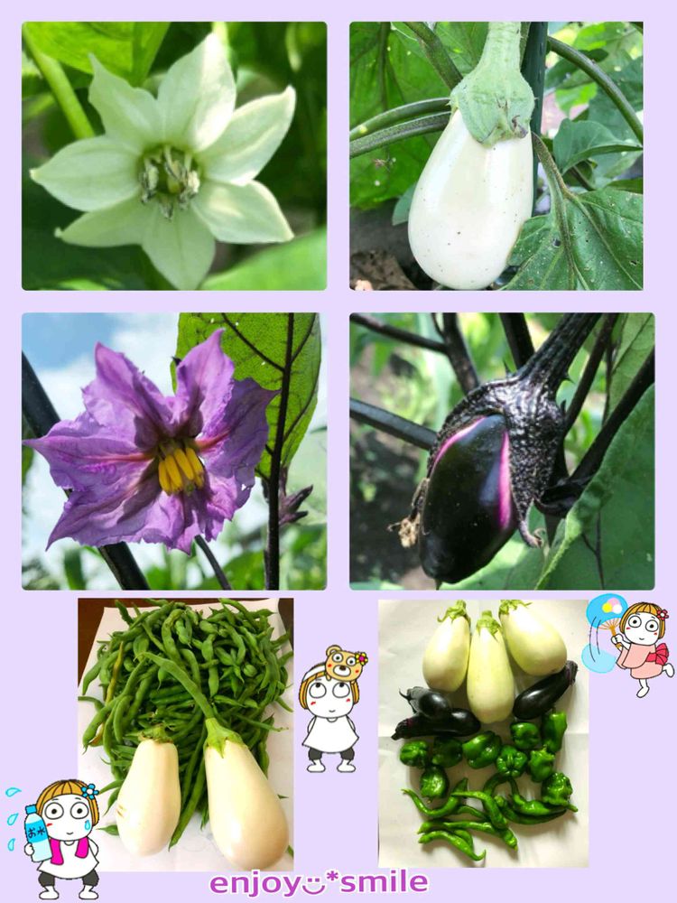 素敵なお花ジューシー野菜イイネ👍フレッシュな野菜は最高のご馳走🎵焼きナス食べたいなあ☺