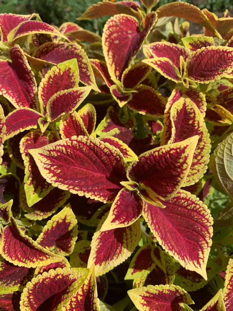 畑に植えたコリウス、元気😊にモリモリになってるが、葉っぱがバックに食べられる被害出てます😅