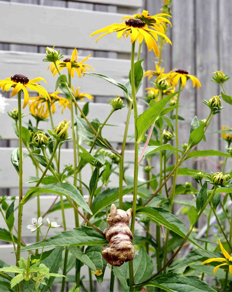『ルドベキア ゴールドストラム』によじ登って居るネコちゃんの後頭部🐈