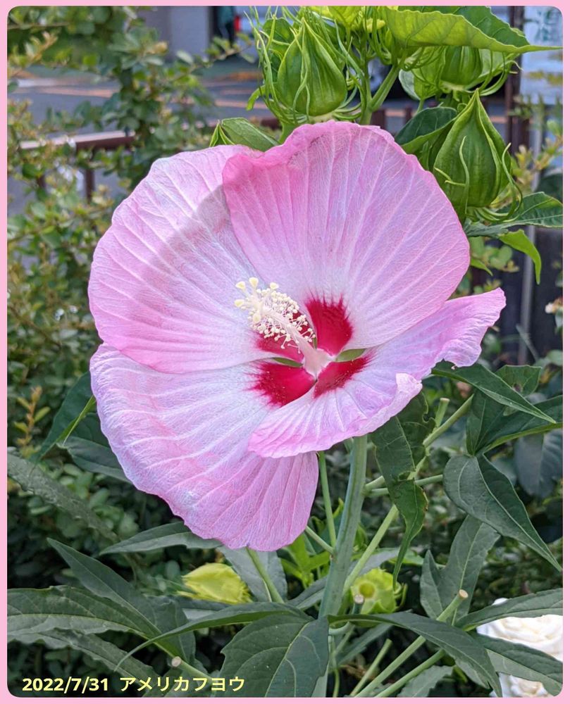 ピンク色のアメリカフヨウ