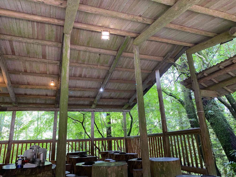 岩をくり抜いたそうめん流しが風情あるし、自分で焼くおいしい地鶏、郷愁を誘ういびつな形のおにぎり。ここ以上のそうめん流しはないと思っている。