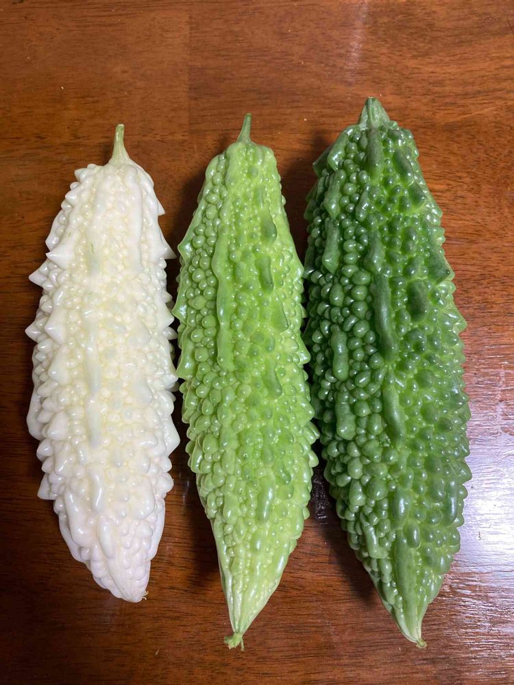 白い子、ハーフの子、緑の子とグラデーション‼️ゴーヤ3兄弟🎶