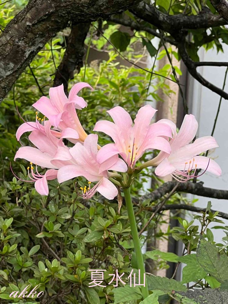 リコリス 夏水仙の可愛いピンクの花が咲いてます‼️