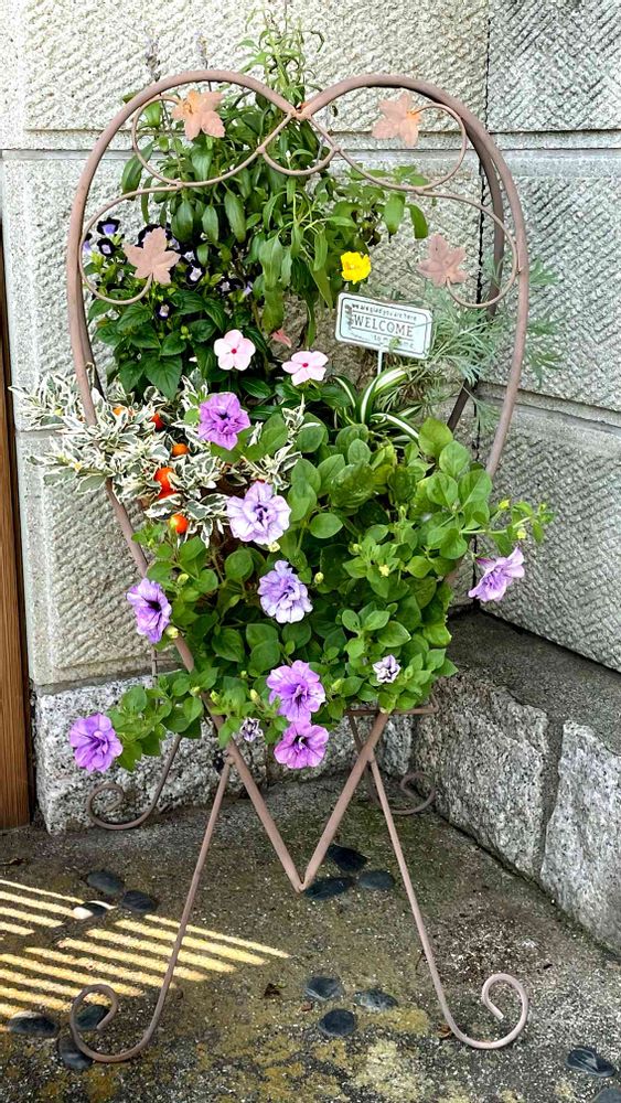 ハートの❣️のリースかけ?鉢置?何と言うのでしょう🙄 ♥️と植物もマッチしてて素敵ですよ🥰