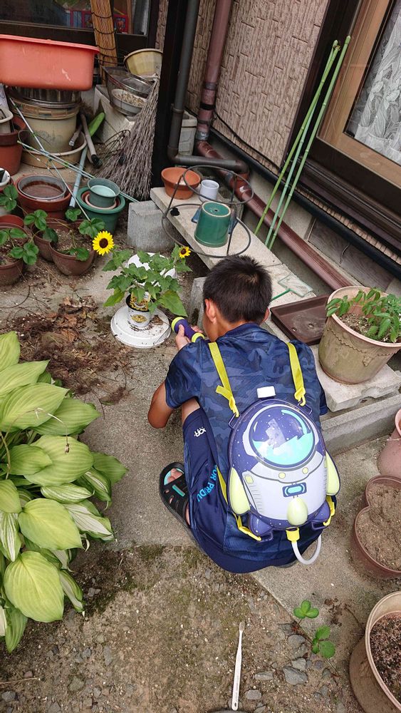 水鉄砲で水あげるのも楽しそう🎵喜んで、庭の草花に水をあげてくれました。