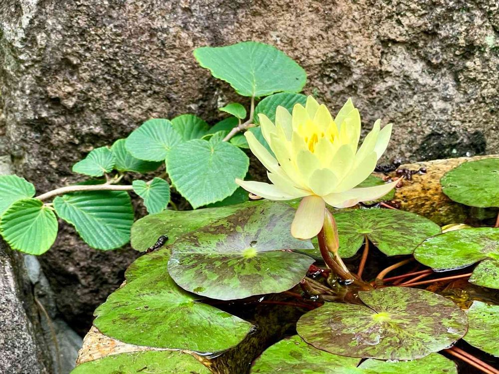 手水鉢に植えた睡蓮が今年も涼しげに咲きました。