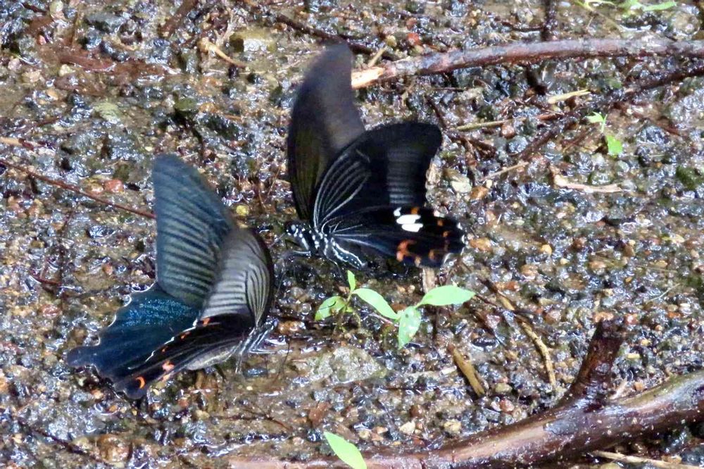 宮崎県の湧水池の辺り、代わる代わるアゲハ蝶の雄が吸水に訪れています˗ˋˏ♡ ˎˊ˗