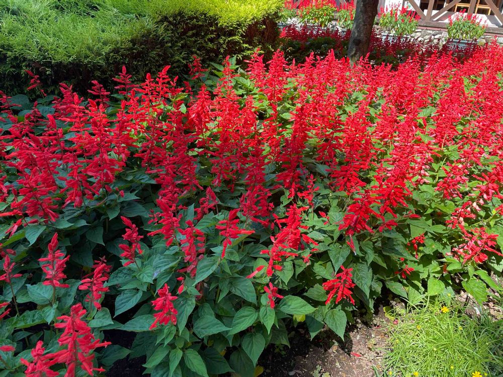 道の駅の花壇のサルビア元気いっぱい
