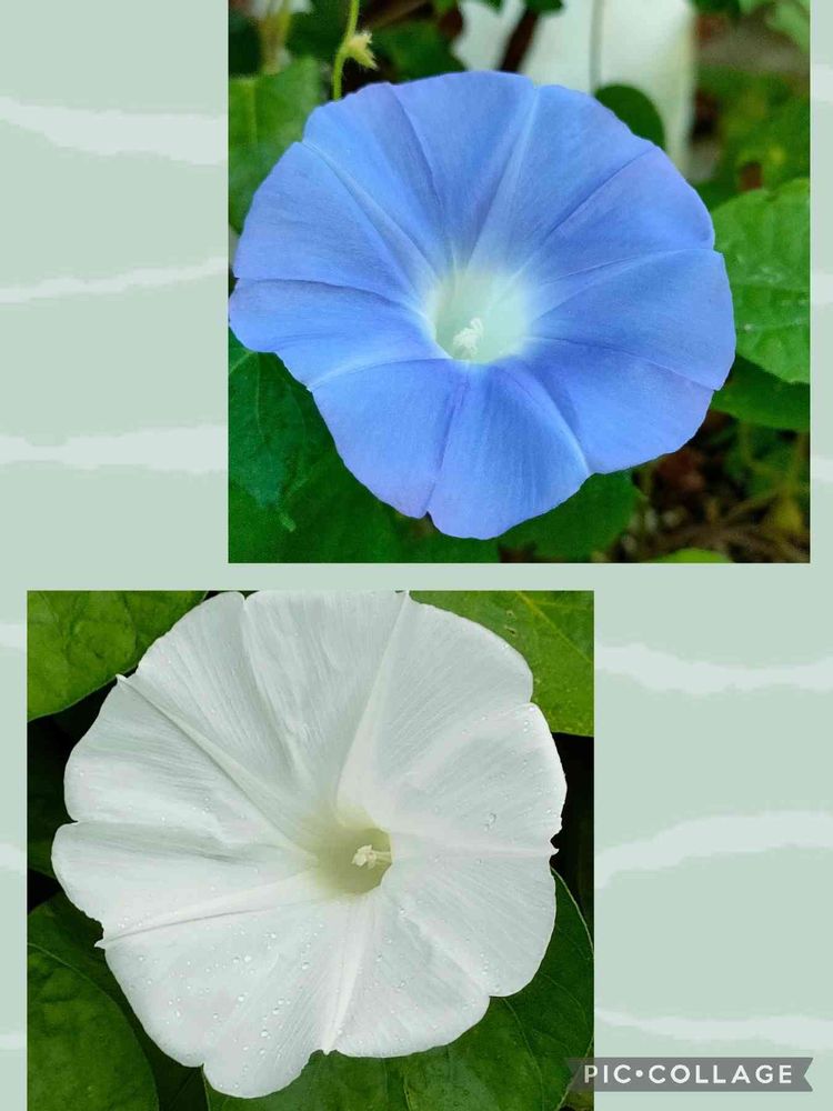 家に咲いてる朝顔とお出かけ先で見つけた夜顔です💞