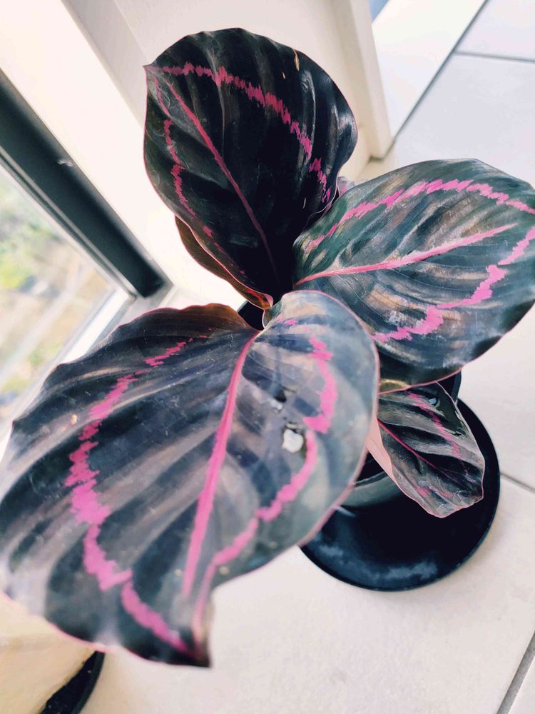 黒ぐろとした葉にピンクのクレヨンで描いたみたいな葉に一目惚れ😳💕