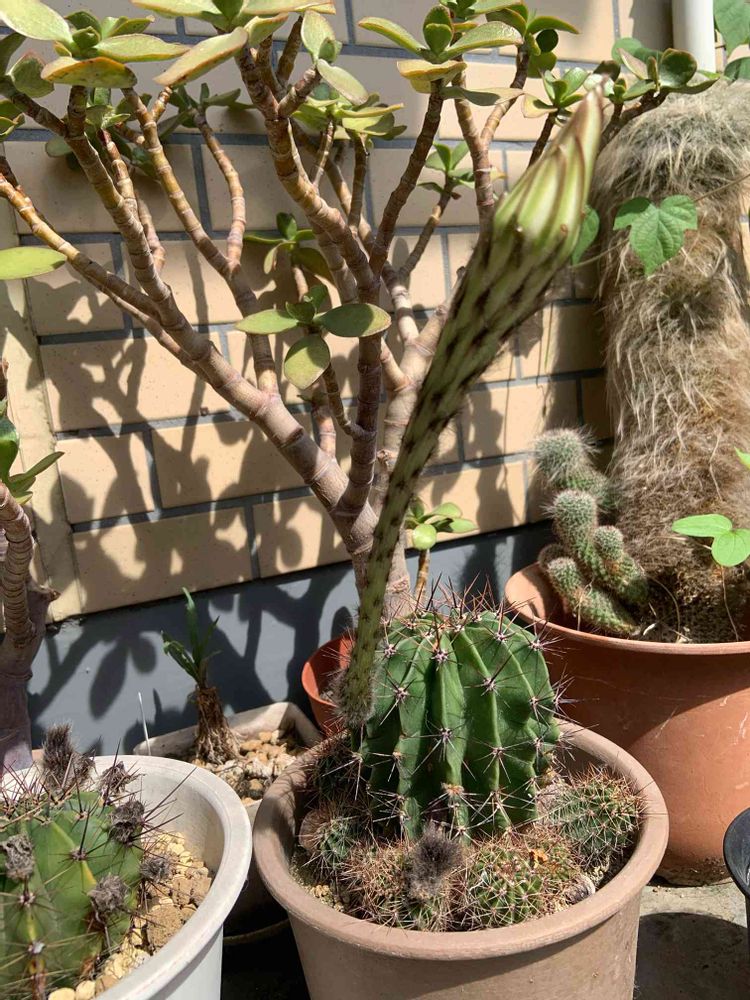昨年咲いた個体の蕾が成長して、あと少しかな?