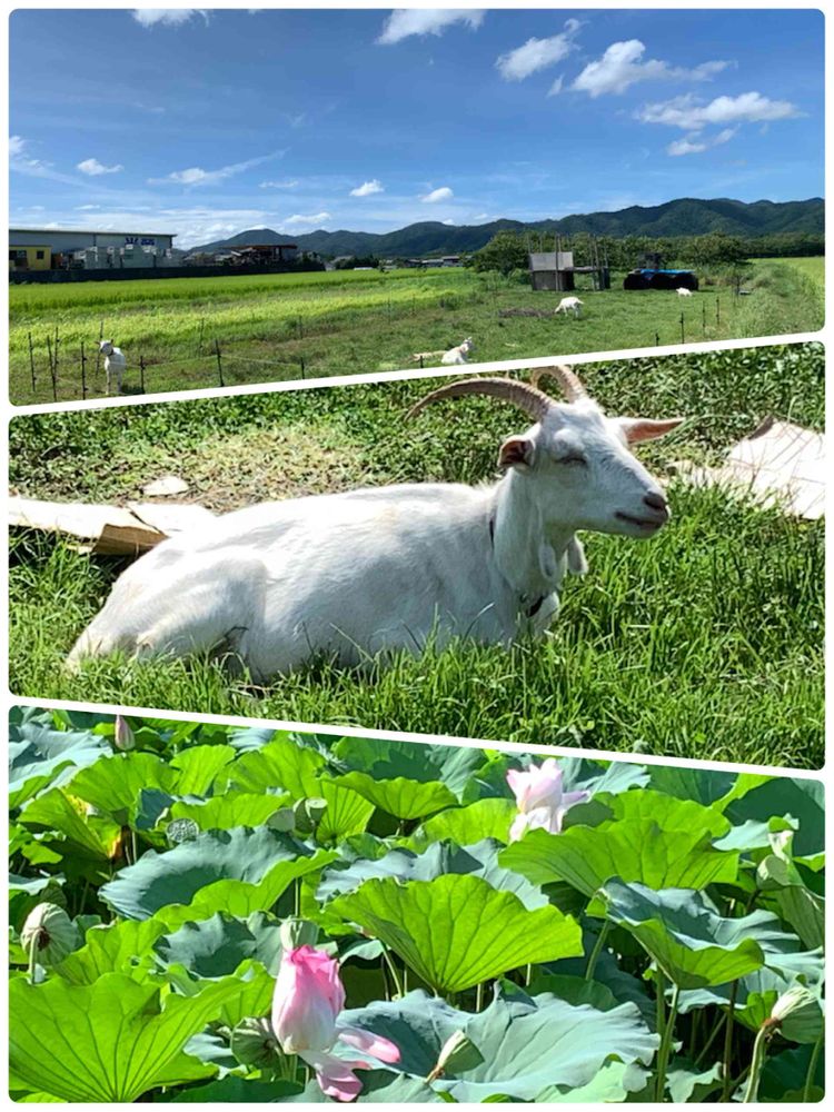 お天気も良く(良過ぎ)暑い中草を食べてるヤギ🐐🐐🐐そしてお昼寝中のお父さんヤギ🐐でした😊