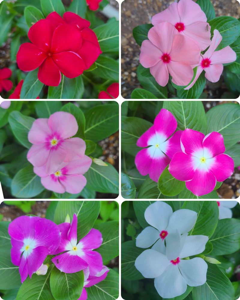 花壇に色取り取りの日日草が次から次と咲いて元気です✨😀