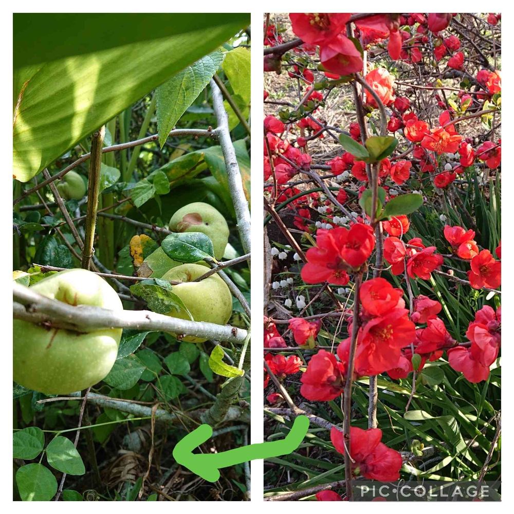 春に咲いた木瓜の木に、子供のこぶし大ぐらいの実が四個なってました😆🎶