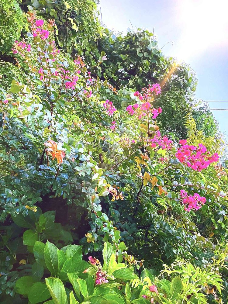 朝もすっかり明けて朝陽が差し始めた頃、万葉の中庭のサルスベリの様子を撮影してみましたデスら😸