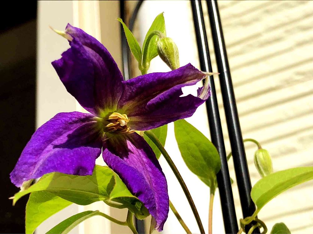 2ヶ月程前小さな苗でお迎えしたクレマチスが咲いてくれた~٩(๑ᵒ̴̶̷͈᷄ᗨᵒ̴̶̷͈᷅)وヤッタ♪