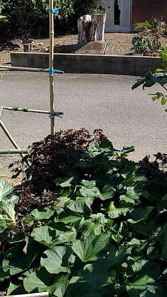 赤紫蘇が要らない栄養を吸い取ってくれるらしいですよ~新しい芽から出た根はツル返しして栄養を取られないようにすれば、大きな芋が期待出来そうです🖐️