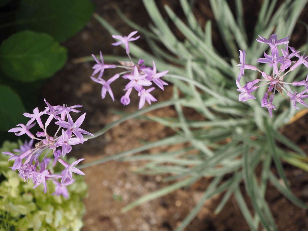 斑入りの葉と薄桃色の花が涼し気ですが、ニラのようなにおいだけがなあ・・・
