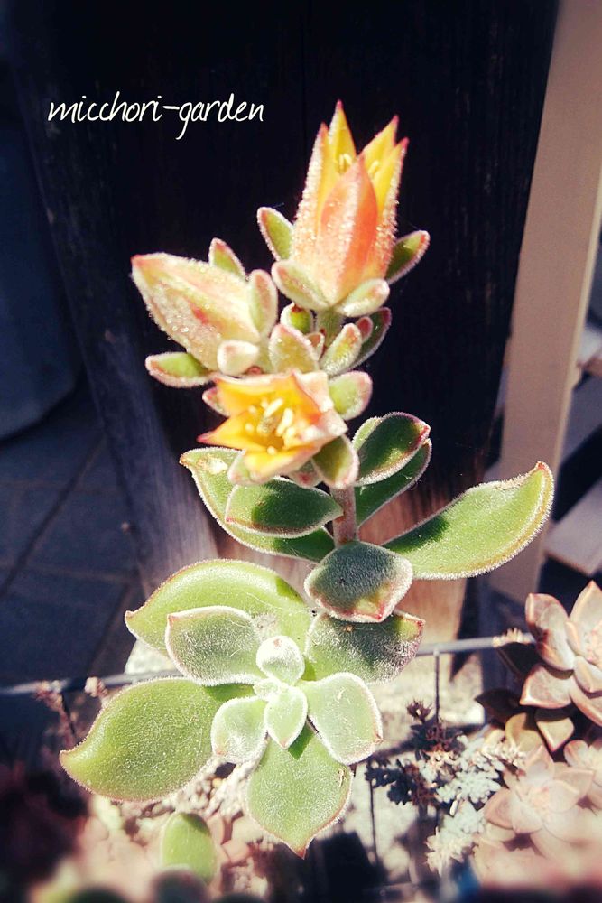 名前がワカラナイ多肉ですが、ギラギラの陽射しの中咲いています。🔆