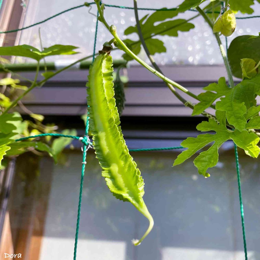 「シカクマメ」1個だけ実りました。
