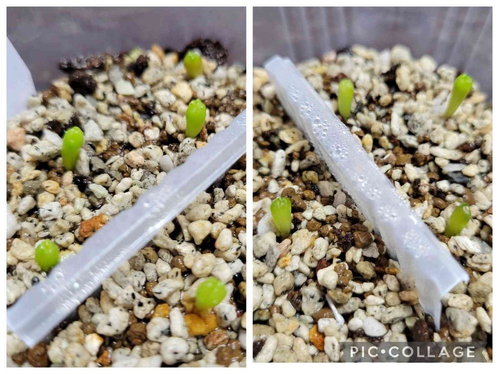 本当に少しずつですが大きくなってきてます(*´艸`)1度目は溶けて失敗したので、最後の種がここまで成長してくれて嬉しいです🌵✨