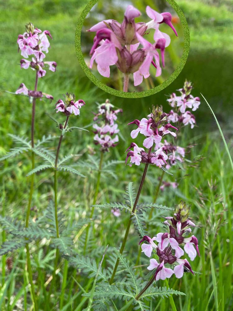 鳥のツルの頭のような可愛い形の紅紫色のお花を付けるヨツバシオガマ💜❤️