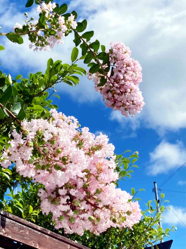 青空にサルスベリ🌸 綺麗ですよね〜😆