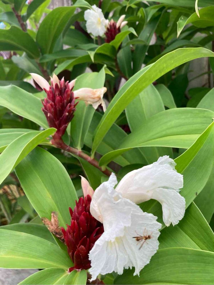 さん、おつかれさまです⭐️ 神頼みの私も合掌したー!😆 レッドジンジャーに白いお花が咲いてるようなかんじ。お花は1日しか咲かないらしい💔