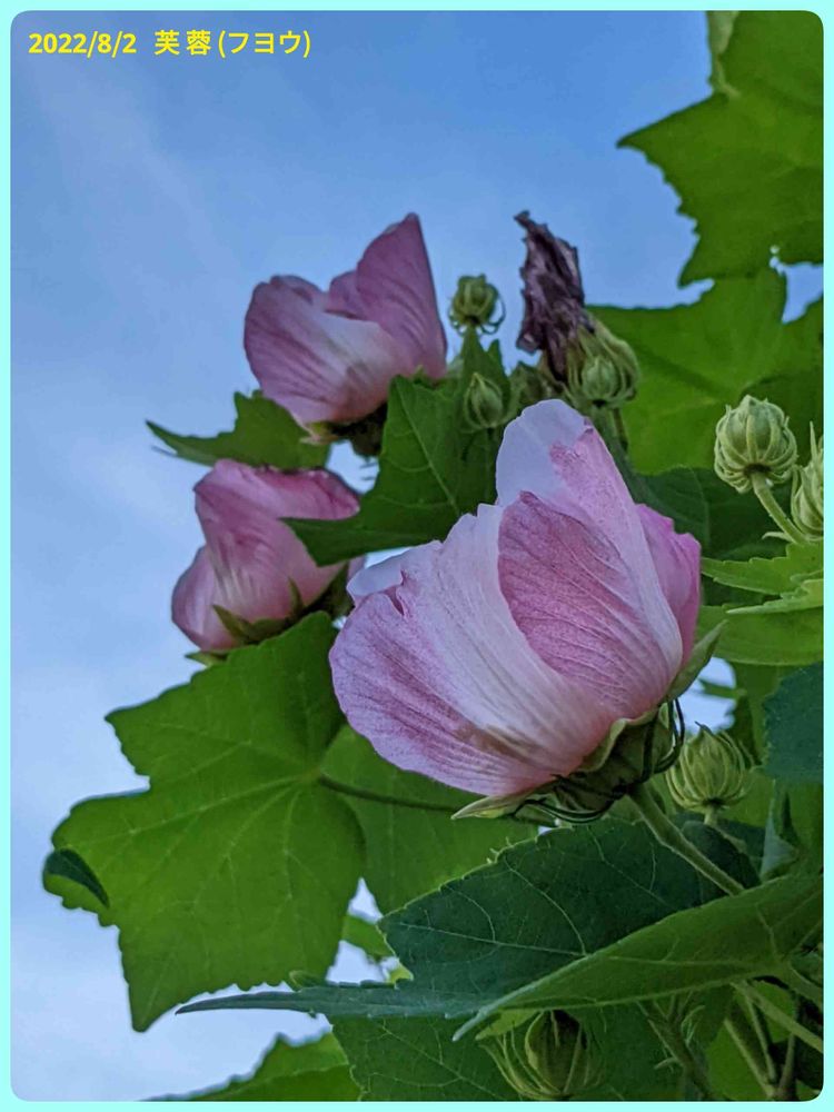 青空の下で咲く芙蓉の花。
