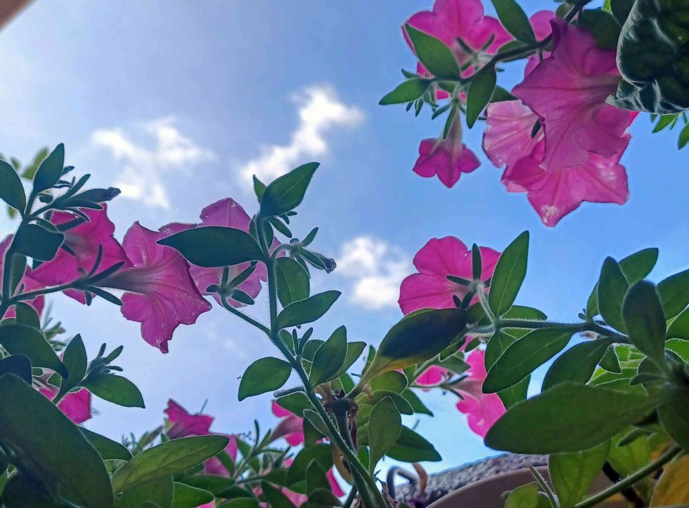 サフィニア💗後姿ですが青空と素敵にコラボできました〜💗💙💗
